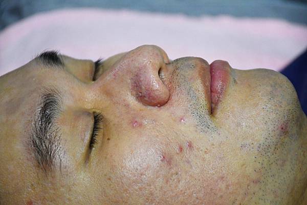 老公本身的皮膚狀況就是小時候亂擠痘痘留下的痘疤,還有因為油脂分泌旺盛而產生的痘痘與粉刺