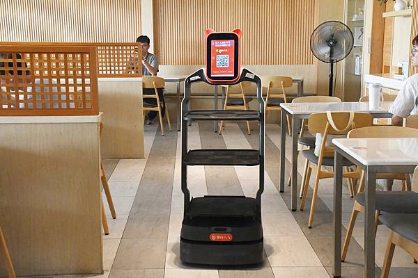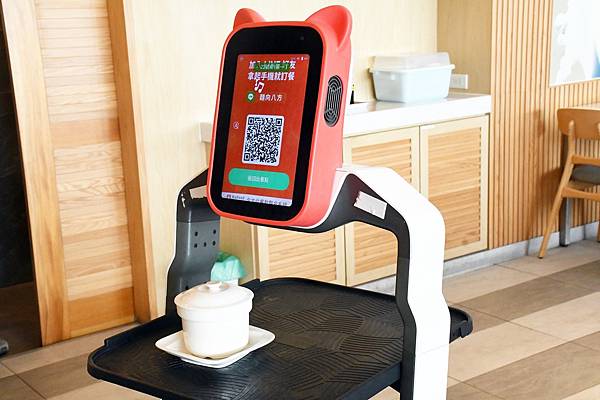 連麵店也都這麼科技化?送餐的可愛機器人把我們的餐點送上來~增加了幾分趣味