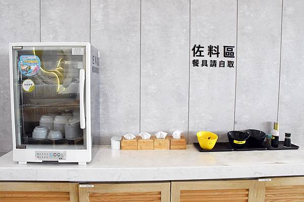 餐具、醬料區都很潔淨整齊,更顧及衛生的有消毒