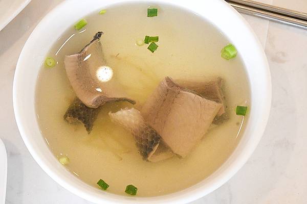 魚皮有著一定的黃金比例厚度,吃的到那種細嫩、沒有腥味,同時湯喝起來也非常的清爽鮮美