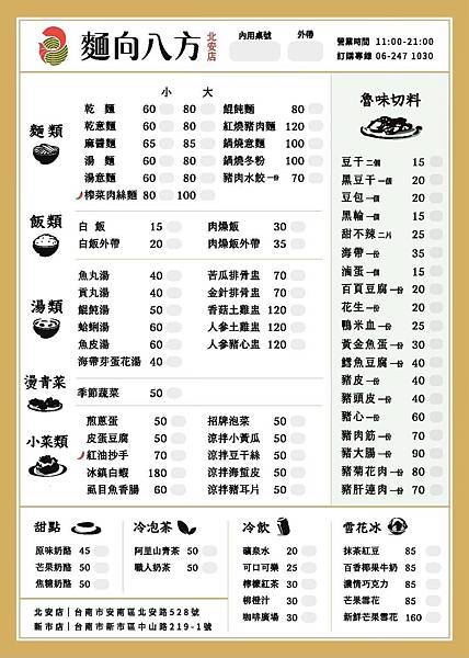 你知道麵向八方是台南虱目魚佼佼者的台南蔡相關企業嗎?所以魚皮湯、虱目魚種類的餐點真的是必點!