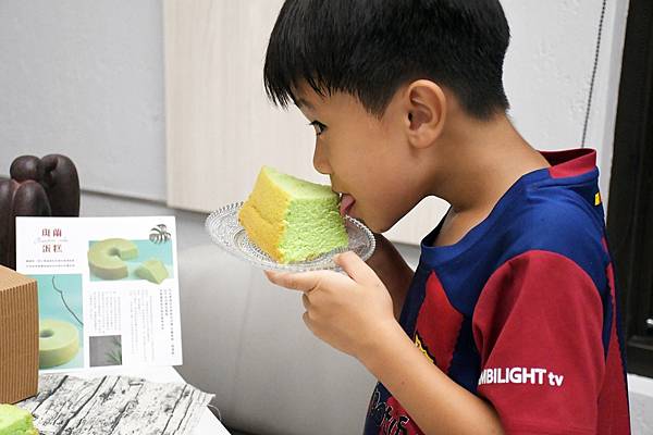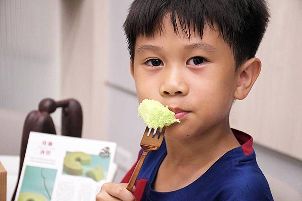 小孩嘴巴最準了,每次只要是不合意的點心立刻是轉身離開~沒想到嘗試新滋味的斑蘭蛋糕居然能夠讓他停下腳步,並且等待我拍照完成!真的是太神奇了